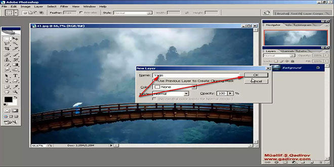 Həmin layeri ad veririk. Əməliyyatın təsdiqi üçün Ok düyməsi sıxılır. Beləliklə Layer panelində Yagis adı altında yeni boş layer yaradılmış oldu.
