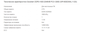 Şəkil 2-də göründüyü kimi bu əməli yaddaş fərdi kompüterlər üçün nəzərdə tutulub. Əməli yaddaşın həcmi 2 GB-dır. Əməli yaddaşın tipi DDR3 SDRAM-dır. Əməli yaddaşın tezliyi 1600 Мhz-dir. Qida gərginliyi 1.5 voltdur. Səmərəli ötürmə qabiliyyəti 12800 Mb/san-dir.Yaddaşın gecikmə sxemi isə 11-11-11-28-dir.