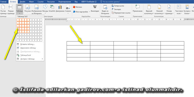 - 1 Word 2016 proqramında Таблицы alətlər qrupu