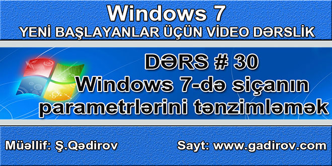 Əziz oxucularım gadirov.com saytının daimi ziyarətçiləri. Xoş gördük sizləri. Bugünkü, video dərsimizin mövzusu Windows 7 siçanın parametrlərini tənzimləmək olacaq. Məlumdur ki, Windows Xp əməliyyat sistemində olduğu kimi Windows 7 əməliyyat sistemində də Siçan (mouse) və onun parametrlərini tənzimləmək olar.