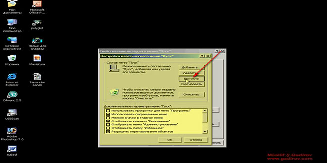 Gördüyümüz kimi Настройка Классического меню Пуск adlanan yeni pəncərə meydana gəlir.
